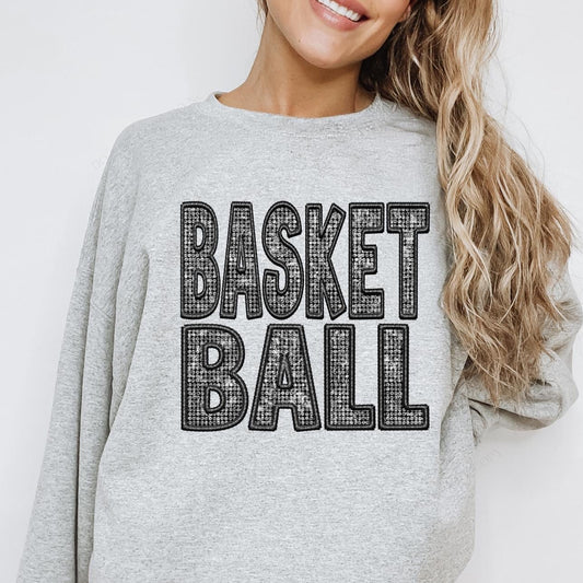 Basketball MOM Diamond Bling Faux Embroidery Crewneck