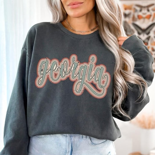 Georgia Boho Scroll Stacked Distressed Crewneck