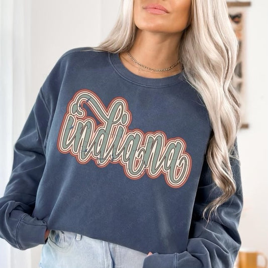 Indiana Boho Scroll Stacked Distressed Crewneck