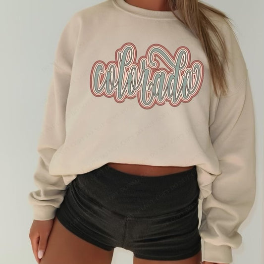 Colorado Boho Scroll Stacked Distressed Crewneck