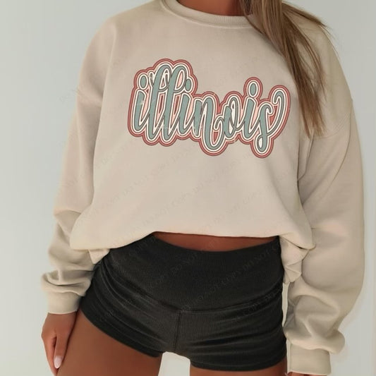 Illinois Boho Scroll Stacked Distressed Crewneck